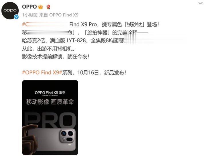 往后便是10月16日发布的OPPO Find X9系列旗舰新机,官方称之为移动影像的「画质革命」与「旅拍神器」的完美诠释。Find X9系列首批搭载天玑9500芯片,并结合自研的全新一代潮汐架构引擎,全面释放平台性能潜力;在系统层面,首发ColorOS16,流畅度与能效优化显著提升,同时延续Find系列一贯的设计美学与影像实力。Pro版本影像更是搭载哈苏真2亿、满血版LYT-828、全焦段8K超清照片、4K超清实况照片等顶级配置,让用户从此出游无需背相机。更有超过7000mAh的大容量冰川电池,为持久续航提供保障。性能突破、强悍影像、长续航与系统优化相辅相成,共同构筑Find X9系列的顶级旗舰体验。