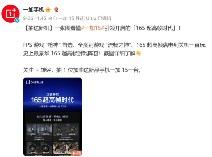 一加15也加入了10月份发布会的行列,并宣布将开启「165超高帧时代」!该款新机号称FPS游戏“枪神”的首选,全类别游戏的“流畅之神”,尽享极致电竞体验。一加15搭载第五代骁龙8至尊版与ColorOS16,性能强劲、系统流畅智能。目前也公布了全新的「原色沙丘」外观设计,该配色将首发航天级纳米瓷金属,比钛金属表面硬134%,比不锈钢硬223%,比普通阳极铝合金硬344%。